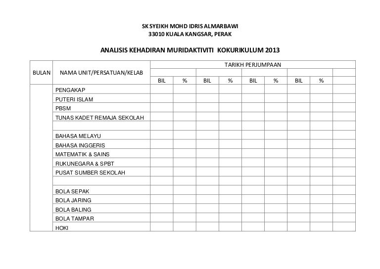 Rekod Kehadiran Murid Borang Laporan Kokurikulum Pdf