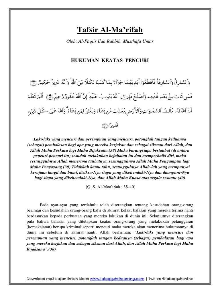 Surah Al Maidah Ayat 38 Arab Latin Dan Artinya Tentang Hukum Mencuri Muslim Terkini